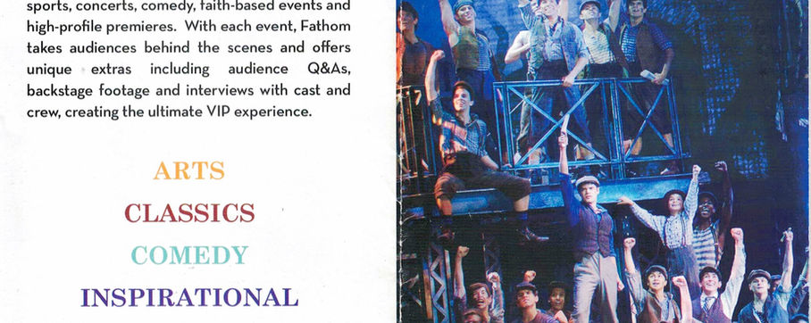 After Newsies: The Broadway Musical was filmed in 2017, FathomEvents.com hosted a cinematic "moviegoing experience" that allowed anyone near a participating movie theater to see the Broadway show on the silver screen. I didn't see it; I didn't even know about it. But, the next year, after I stumbled across the filmed version on Netflix, I was suddenly infused with the Newsies spirit and was drinking in anything I could get my hands on about the show and its actors. When I began seeing hints that it might be shown in a movie theater, I started snooping (which, thanks to Google, wasn't all that hard to do), and found out that, YES!, there was going to be a SECOND cinematic event! And since I knew about Newsies now, you can bet that I wasn't going to miss it!